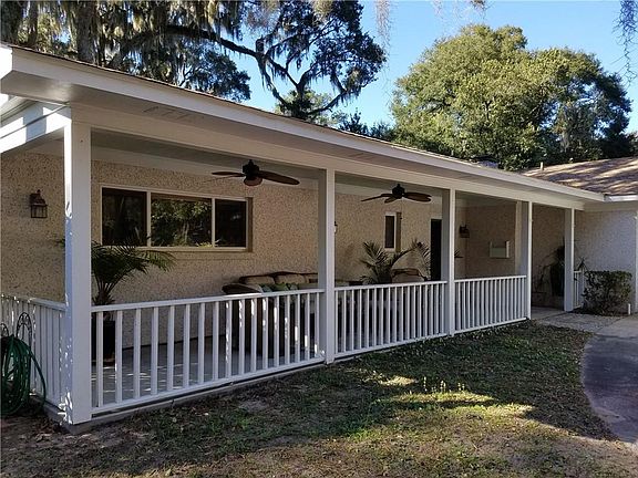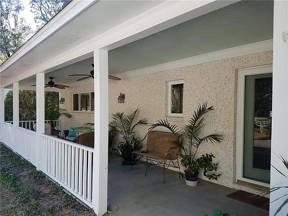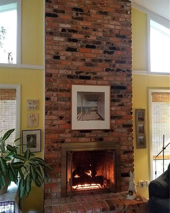 Tabby Ranch with rocking chair front porch to sit out on and enjoy the peaceful setting of lush oaks on Old Plantation Rd. Beautiful vaulted ceilings in great room with dining, built in bookcases, gas log fireplace and recessed lighting. The kitchen is open to the great room with breakfast bar. Patio doors and skylights allow lots of light. Look out onto private landscaped backyard and patio. There are 3 bedrooms and 2 full baths, laundry room and 2 car garage with extra storage.
