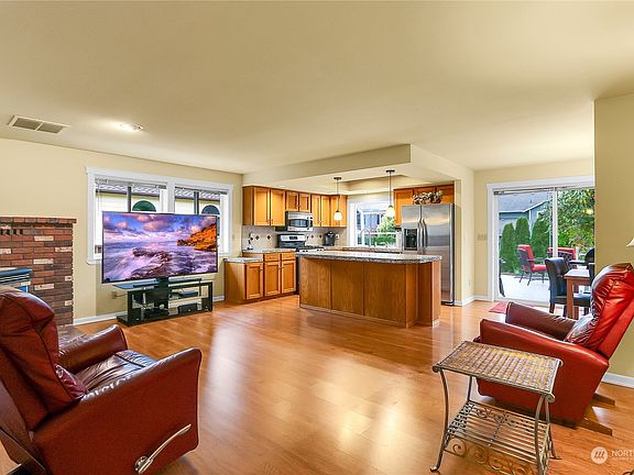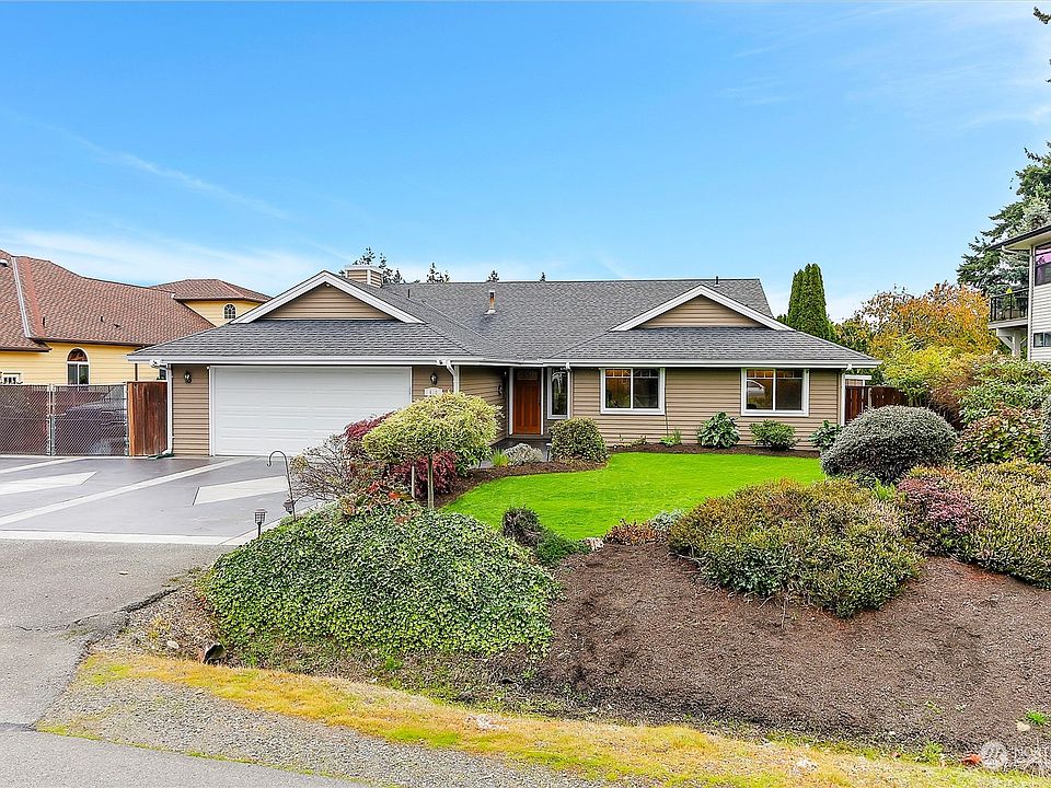 Rambler! First time on the market. Impressive street presence! Beautifully maintained including quality thoughtful updates throughout. Central entry to spacious livingroom with vaulted wood stained ceilings that looks out to scenic level large yard. Spacious Greatroom has gas FP. & opens to island centered kitchen, 3 bedrooms including 'Primary' suite with 3 closets + updated walk-in shower. Heated floors in both bathrooms.Full size utility room has sink. Garage has plenty of work & storage space. Location is convenient to downtown Mukilteo, shopping, commuters, Boeing. Additional updates: Heat pump, furnace, air conditioning, windows, Garage door/door opener. Driveway is newer. Fenced side yard has space for RV parking, storage