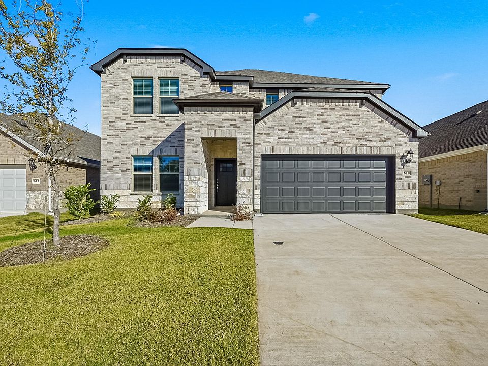 The first-floor primary suite offers a relaxing retreat with dual sinks and a generous walk-in closet. The modern kitchen, featuring a convenient island and walk-in pantry, seamlessly connects to the open-concept family and dining areasperfect for entertaining or everyday living. Also downstairs find a second bedroom, guest bath and laundry. Upstairs you'll walk in to your second living or game room and 3 spacious bedrooms and bathroom.