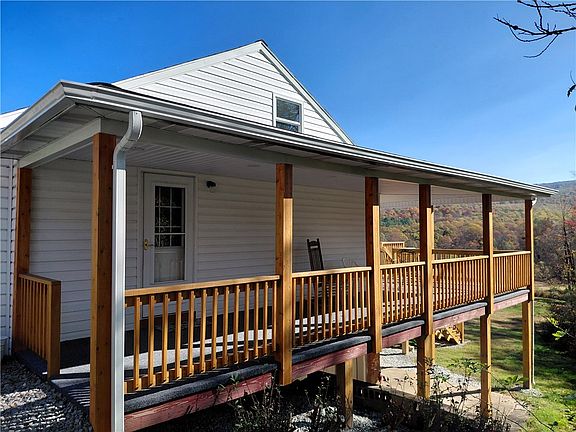 Enjoy the mountain views from the wrap around deck of this recently remodeled and updated home on Ross Mountain Park Rd! This house sits on 5 acres and has a one car detached garage, and plenty of off street parking. One level living, with a bonus 32x12 room upstairs. Step onto the covered porch and enter into this open concept home that has been completely overhauled with new electric, plumbing, hvac, well pump, roofing, new walls, flooring, bathrooms, and a kitchen that showcases hickory cabinets, even the appliances are brand new! On the main level you will find 2 bedrooms, one with access to the back deck. There is one full bathroom and one half bath with laundry. Off the kitchen you will find an additional room that could be used as a pantry, bar, or even a mudroom, due to the door accessing the side porch. Upstairs is a large bonus room that could be used as storage, office space, playroom, or an additional bedroom. The recently painted basement is a blank canvas!