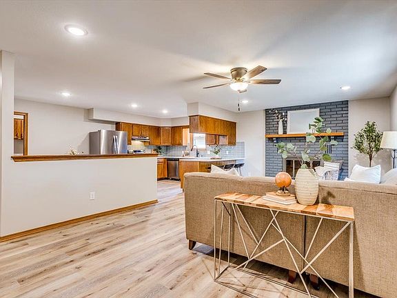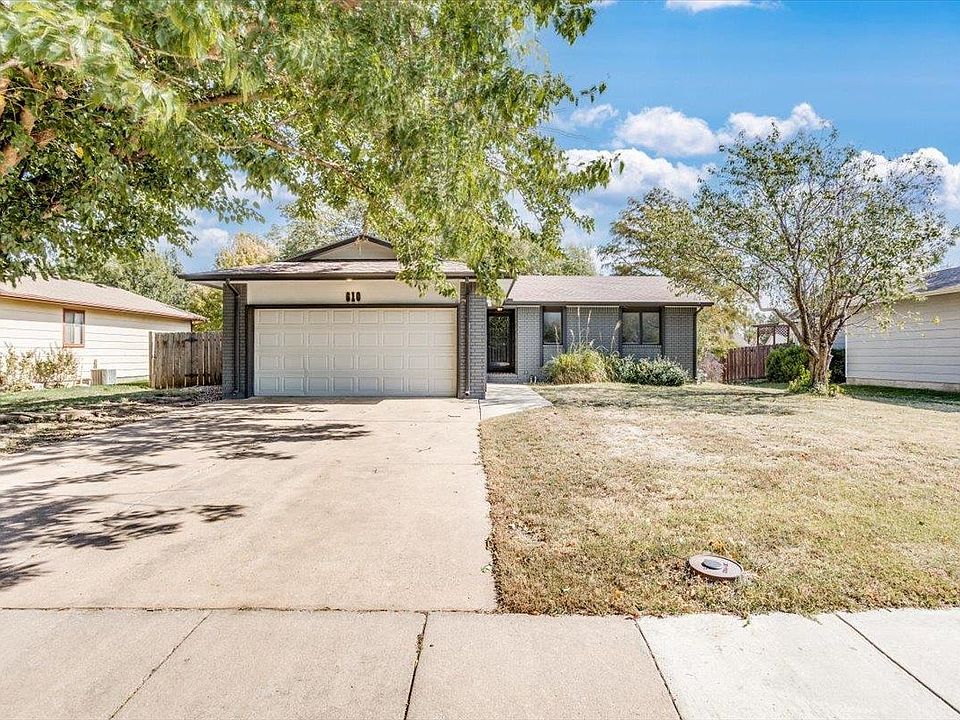 Welcome to this beautiful ranch home nestled in the desirable Goddard School District, offering great curb appeal with its charming partial brick facade, fresh exterior paint, and mature landscaping. Step inside to discover a welcoming interior featuring fresh paint throughout, along with new luxury vinyl flooring and carpet that add a modern touch. The living room boasts a cozy brick fireplace, creating the perfect spot for relaxation. The kitchen, open to the living room, is an entertainer's dream, showcasing new granite countertops, stylish subway tile backsplash, appliances that are all included with the home (including a brand new oven/range), and updated faucets, fixtures, and hardware. Enjoy meals in the dining room or at the convenient eating bar. The main floor also features a conveniently located laundry room for added ease. Head down to the basement where you'll find a spacious family room, a bedroom, and a full bath, with potential for additional living space. Consider adding an egress window to create a fourth bedroom, or you can use the area as a hobby room, office, or even a home gym. The back yard has a wood privacy fence, storage shed, and a deck that spans the entire back of the home, perfect for outdoor gatherings. This home is located close to local schools, the City of Goddard Pool, recreation options, restaurants, and much more, making it a perfect choice for your next move. Schedule your private showing and come see it today before it's gone!