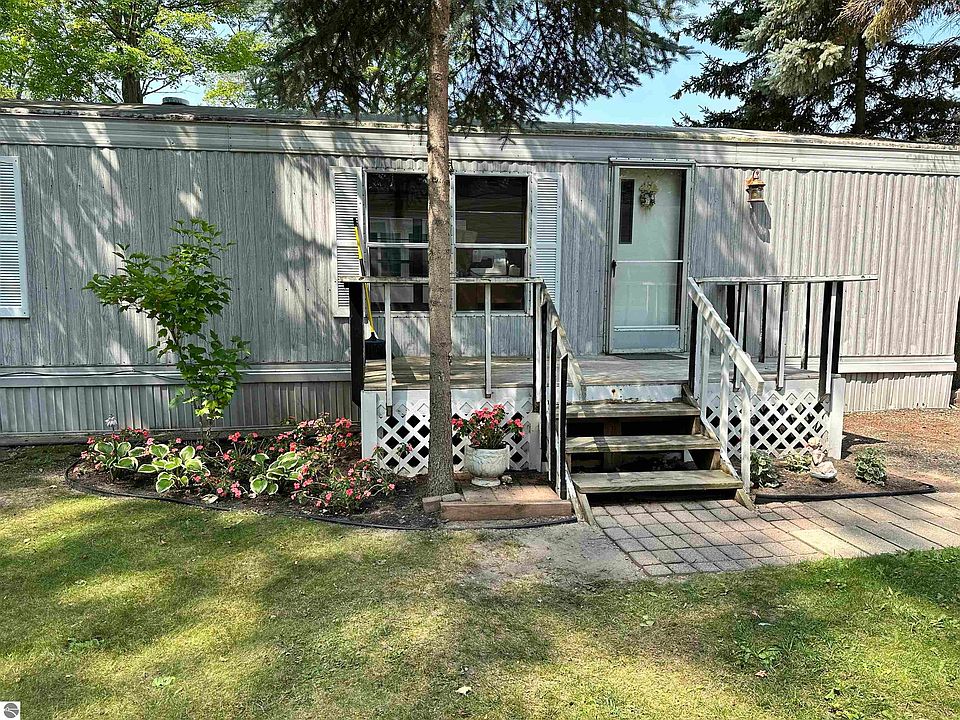 MOTIVATED SELLER!! Home needs some TLC, but definitely livable. Enjoy shared access to Bass Lake in this 55 and older community of Vacation Village. Elk Rapids has a variety of delicious restaurants, wonderful shops, beautiful beaches, a harbor, a marina, and Elk Rapids Golf Club is just to the east. Home has 2 bedrooms and 1 bathroom. Great for weekend get-aways. 8x8 garden shed included. All measurements are approximate, should be verified by Purchaser. Lot rent is currently $405, subject to change with new owner. *Please note this is the final sale of this trailer due to age, per park rules. Purchaser will be responsible for the removal after their occupancy.*