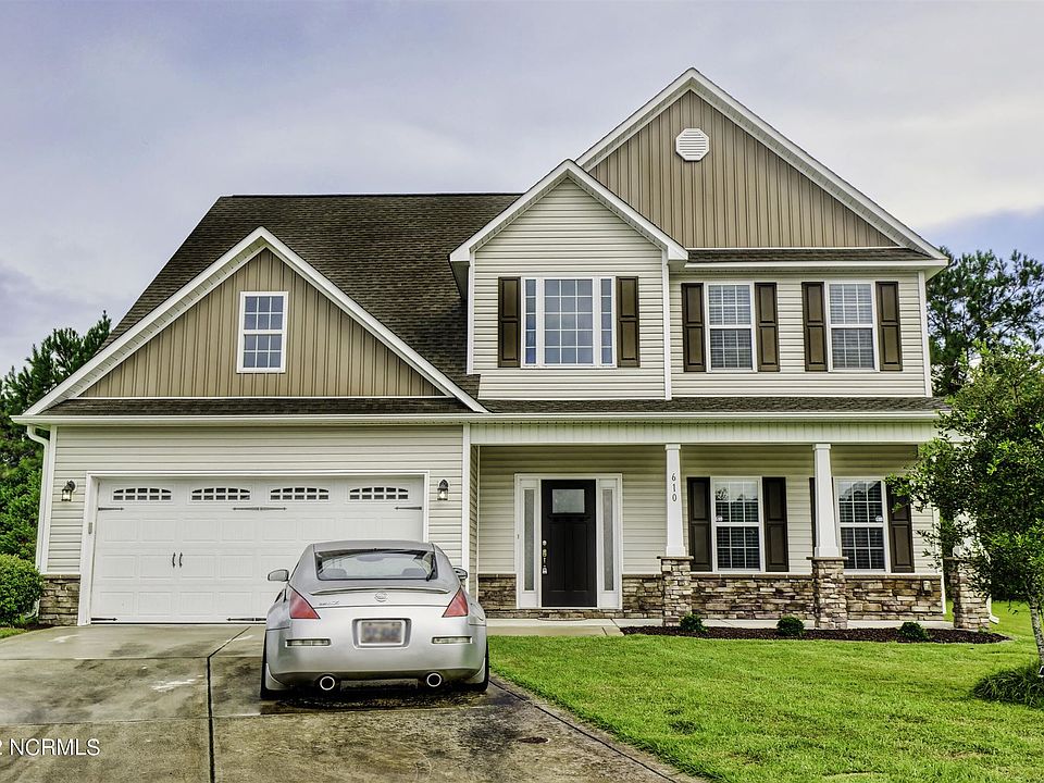 Welcome to Charleston Park. A 2016 Sydes construction Catalina floor plan awaits its next owner. A 4 bedroom 2 1/2-bathroom home in the dead center of the cul-de-sac will make a perfect home for a new family. Walking in through the grand entrance you'll be greeted with a formal dining room with coffered ceilings and wainscoting and then an open concept living space. Kitchen has wrap around counter space and an abundance of cabinet space. Appliances are softly used GE matching appliances. Kitchen opens into the living room and 9ft ceilings with an electric fireplace. Downstairs you will also find a double wide pantry, linen closet, coat closet and a walk-in large laundry room with LG washer and dryer.Upstairs are all 4 bedrooms with large closets. Primary bedroom has trey ceilings, huge space for oversized furniture, a large walk-in closet and garden tub and walk in shower. Out back you'll have a covered patio and much privacy given by the large mature Leyland Cypress trees. Any new home buyer will be thoroughly impressed by the condition and quality. Make your appointment today as we are easy to show.