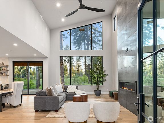 Stunning new construction on the 6th fairway of Rope Rider in Suncadia. Modern design with floor-to-ceiling windows, metal fireplace, and high-end finishes. Main level includes a spacious primary suite with patio access, second bedroom, and open kitchen with oversized island and Wolf/Sub-Zero appliances. Upstairs offers two ensuite bedrooms, large bonus room with built-in bunk beds, and an additional bath. Oversized finished garage ideal for cars, toys, or games. Enjoy southern exposure and double fairway views from your back patio. Ideal mountain retreat or vacation rental!