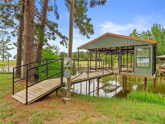 If serenity & simplicity is what you're looking for, look no further! This property not only has a backyard to bird-watch & feed squirrels, but comes with boat shed that holds 2 boats in beautiful Toledo Bend reservoir. Lots of space to clean your fish on back patio. Attached storage with roll-up door provides a safe place to keep your sporting or lawn equipment. All 3 bedrooms feature en suite bathrooms. Open kitchen & living room with vaulted ceilings makes a perfect place for gathering friends & family.
