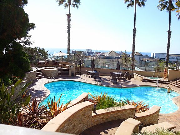 Ocean View, End Unit Studio, 410 sq. ft., built in Murphy Bed, Kitchen/Living Room with Breakfast Bar, 1 covered Carport Parking, Low HOA fees $255/month Village Amenities Include: 2 pools , 2 spas, gym, clubhouse, BBQ area and fire pits, deli/restaurant and market, lush landscaped grounds with private walk ways along the ocean side. Steps to beach, pier, harbor, bike paths and fine dining.