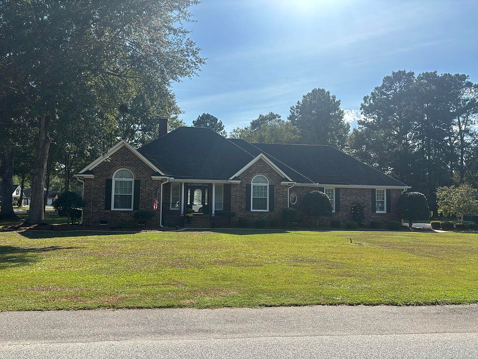 Beautiful 4 bedroom, 3 bath home on a large corner lot in popular Lakewood Links Subdivision with a view of the Golf Course! 4th Bedroom is a finished room over the garage with a full bath and spacious walk-in closet. Split Floor Plan. Bright Sunroom with lots of natural light. Lovely back Terrace & Brick fence. Immaculate landscaping with outdoor lighting. Many recent updates to include New light fixtures and fresh paint in several rooms, New kitchen faucet, New bathroom fixtures & carpet in upstairs bedroom, Some New Windows, and more!