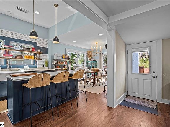 Step into timeless character with this beautifully updated 1945 home, perfectly situated on .46 ACRES with NO HOA less than 1/2 MILE from DOWNTOWN GREER and only one block from Greer’s Center for the Arts and its surrounding park and playground. With 3 bedrooms, 2.5 bathrooms, and a spacious upstairs flex space, this home blends historic charm with modern upgrades. In the kitchen you will find High-end quartz countertops, stainless steel appliances, soft-close cabinets and drawers, and an oversized farm sink making this a dream space for cooking and entertaining. The primary suite has a walk in closet and the ensuite bathroom features dual sink vanity and large walk in shower is thoughtfully updated to provide modern comfort while maintaining the home’s classic charm. The back deck overlooking the partially fenced in yard is ideal for entertaining and enjoying the outdoors. Off-street parking provides ample space for multiple vehicles. And the quintessential partial wrap around front porch is a welcoming entrance into the home and the perfect place to sit awhile and enjoy some sweet tea. With its unbeatable location near parks, shops, and restaurants, this charming home offers the perfect mix of convenience, character, and modern updates! Schedule your showing now to experience for yourself this enchanting home and the lifestyle of living in Downtown Greer!