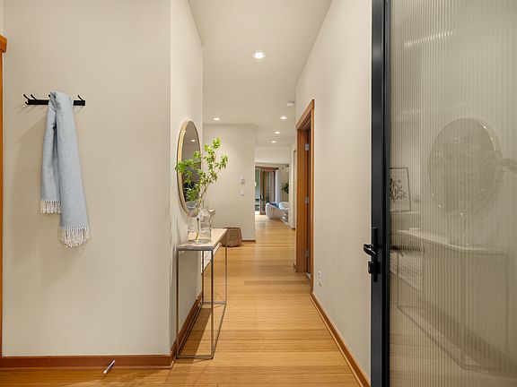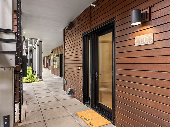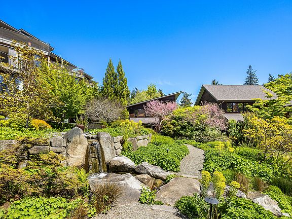 Discover the epitome of sophisticated in-town living at Vineyard Lane. Among the largest 1-bedroom condos on Bainbridge, this light-filled home offers 9-foot ceilings, timeless finishes, and a new mini-split for year-round comfort. The airy great room features artful built-ins flanking a cozy propane fireplace and opens to a sunny ultra-private patio. Kitchen with solid-surface counters and propane range. Cheerful en-suite bedroom with walk-in closet; den for guests, office, or media. Wander forested trails just out your door or explore Vineyard Lane's lush gardens and flowing water. Enjoy easy access to the Seattle ferry and Winslow's vibrant amenities, or gather with neighbors at the fireside patio before retiring to your private refuge.