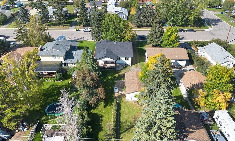 Located in the historic heart of Diamond Valley (formerly Black Diamond), this raised bungalow offers over 1,500 sq ft of above-ground living space on a 10,000+ sq ft lot with mature trees and convenient front street and back alley access. Built in 2002, it is one of the newer homes in the neighbourhood and features an open-concept main floor with spacious living, dining, and kitchen areas that feel warm and inviting. Three bedrooms complete the main level, including a comfortable primary suite with a walk-in closet and ensuite, along with a large and functional main bathroom with laundry. The finished basement adds even more room to enjoy with a generous family area, a bright craft room with plenty of windows, two additional good-sized bedrooms, and another large bathroom with secondary laundry hook-ups. Comfort comes easy with a forced-air furnace and in-floor heating zoned throughout both levels. Outside, you’ll find a covered deck, a large backyard, and an oversized 31 ft by 19 ft detached garage (1975) that’s perfect for parking, projects, or extra storage. Recent updates include a new roof and gutter guards, hot water tank and consistent maintenance over the years, making this a well-kept home ready for its new owners to enjoy in one of Alberta’s most charming towns.