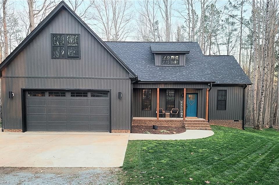 Beautiful Custom Built home less than 1 year old located on .93ac lot. Modern style finishes well planned out and carefully selected by the sellers. Electric linear fireplace, front and back porches, fenced yard w/protected side and back land parcel. Black onyx board & batten front siding, black windows, insulated garage door and gutters. Transom windows. Quartz kitchen tops, open shelving, stunning tile backsplash, beautiful cabinets and island and propane gas cooking. Lots of special features listed in attachments. No carpet. Beautiful Hickory hardwood floors. Nice pantry. Coffered ceilings. Primary bath with wall shower head and rain shower, soaking tub, double vanity with lots of cabinets, barn door and tile floors. The attic has plenty of storage and provides additional space to finish. Bonus room over the garage is a great place to relax or work. Rinnai tankless hot water heater. House is wired for a generator.