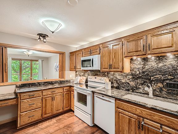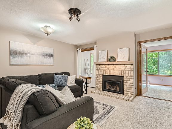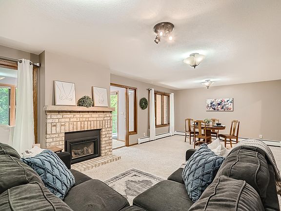Stunning move-in ready condo with breathtaking views! This 1st floor unit offers a well-designed floor plan, maximizing space and comfort. Relax or entertain in the spacious living room with a cozy gas-burning fireplace and charming brick surround. The chef's dream kitchen features ample storage and beautiful granite countertops. Enjoy the serenity of the four-season porch, flooded with natural light. The primary bedroom offers a luxurious private bathroom, and there's an additional bedroom and full bath for guests or a home office. Convenient in-unit laundry. Underground heated parking and exceptional shared amenities, including an indoor heated pool, hot tub, sauna, and exercise room. The patio with a grill is perfect for outdoor gatherings. Prime location Close to Minnesota Valley Country Club and Minnesota Valley State Trail. Opportunity knocks with the perfect blend of comfort, convenience, and natural beauty!