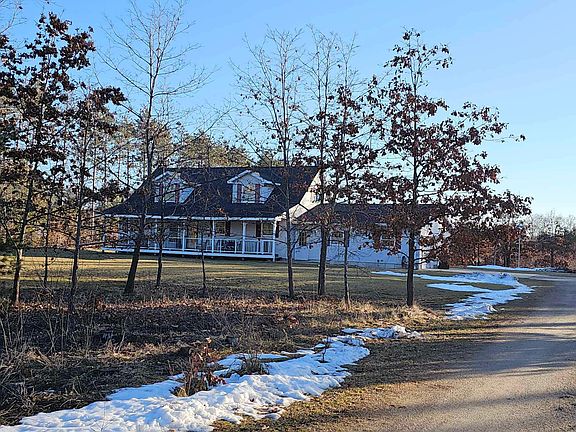 This beautiful Cape Cod style home is located in a private country setting. The property sits on 10 acres of land. The home has 3 bedrooms and 2 and 1/2 baths with plenty of room to add more. There is potential for this home to be a four bedroom with a bedroom upstairs located in the loft. The basement bedroom just needs and Egress window installed. The basement is about 50% finished with a family room and bedroom. The property was built 25 years ago. The roof was just replaced a year ago and the water heater was just recently replaced as well. The back yard is fenced in with a nice back porch. House also comes with a very spacious pole barn for all your projects. Square footage is estimated.