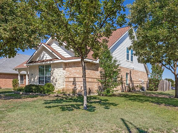 Beautiful Farmhouse on Large Corner Lot with Private Gated Drive! The custom glass etched front door & stone landscape beds welcome you through the 17x6 front porch, perfect for rocking chairs. Inside find neutral paint, pergo wood flooring and lots of storage throughout. The formal dining room has an arched entry access to the large kitchen with wine storage, bar service counter tops, extensive walnut cabinets, built in microwave and walk in pantry. The living room has high ceilings with a grand stone gas start fireplace and guest access to the powder bath with pedastal sink. The primary ensuite boasts a large soaking tub, separate shower w rainhead fixture, two vanities and walk in closet. The dedicated study in an ideal location makes the perfect retreat with custom built ins. The custom wooden spindle banister welcomes you upstairs into the 17x13 gameroom equipped with a fridge and dry bar. Two beds up are large with ample closet space and have direct access to the full bath with shower tub combo, walnut cabinets and linen closet. Outside find a 17x5 covered patio plus a 17x8 grass inlaid stone extended patio. Mature crepe myrtles accentuate the large yard with extended drive for additional parking or outdoor recreation. 2020 Roof. 2020 Exterior Painted.