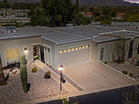Nestled in the heart of Tucson, this charming townhome offers a perfect blend of modern comfort and southwestern allure. Meticulously remodeled in 2015, this residence boasts updated features throughout, including tile floors throughout, contemporary fixtures, and updated kitchen adorned with granite countertops and stainless steel appliances. The spacious open-concept living area invites relaxation and entertaining. The primary suite offers a private retreat with a luxurious en-suite bathroom and ample closet space. The additional bedroom provides versatility for guests or a home office. Enjoy the Arizona sunshine in the private courtyard, ideal for alfresco dining or simply soaking up the lush garden landscape.
