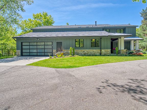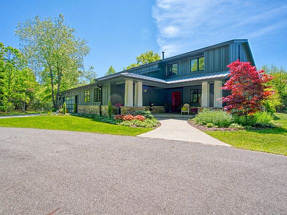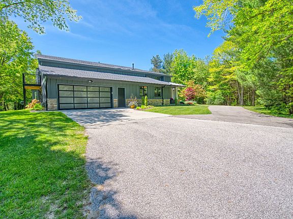 Complete serenity awaits you in this remodeled contemporary home on 10 acres of woods, water and privacy. This lovely 4 bedroom, 4 bath home welcomes you with cathedral ceilings and a comfortable floor plan that flows nicely with a formal living room, open kitchen/dining area that leads into the sun room or out to the inground pool area that offers everything you need for entertaining. The kitchen has stainless steel appliances, a built in TV, quartz countertops, subway tile backsplash and a snack bar with stools. The large family room is all windows, and leads into the office that has its own exterior door to the side yard. The outdoor space has been designed for maximum use offering an inground, L shaped pool, a pool house with serving bar, and a beautiful goldfish pond with water feature. The built in fire pit area, a large pond stocked with fish, and a 2 story heated and foam insulated barn for all of your hobbies complete the package nicely. The exterior of this home was completely remodeled in 2015 with Hardy plank cement board siding, all new windows/doors/garage door, a new roof, new insulation, and fantastic outdoor lighting for all seasons. The upper windows even have a rain sensor for automatic closing when needed. Many updates inside include 5 mini split central air units, LED lighting, 3 bathroom remodels and much new flooring. This lovely home has everything you've been looking for and is ready for you to move in and start enjoying the summer!