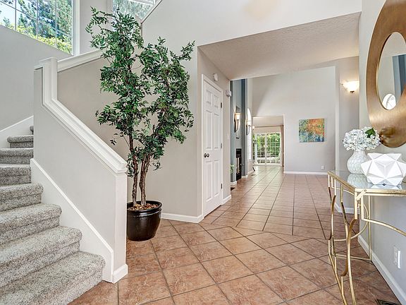 Located in coveted Terraces of Peppertree, this bright, open 4-bedroom home w /soaring livingroom ceilings is beautifully maintained & tastefully updated with fresh paint colors throughout. The primary suite has a lovely remodeled bath w/double sinks, separate shower, soaking tub and walk-in closet. Two more bedrooms upstairs and an additional guest bedroom & full bath on the main level allows your family to sprawl! The open kitchen/dining area has sliding door to a vine covered Pergola. The flex space next to the kitchen can be an office/workspace or formal dining area. The East facing backyard is fully landscaped & features a covered patio, trees, a sumptuous lawn, storage & extra wide side yards (w/easement area for extra parking). Easy access to parks, hiking & biking trails! Wow!