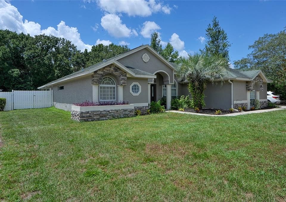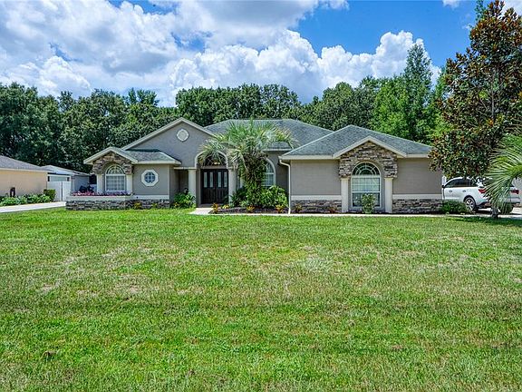 This exquisite home is located in a hugely desirable Ocala suburb, providing easy access to the area's prime shopping, dining, and entertainment corridor, as well as historic downtown and medical facilities. This spacious home exudes style and sophistication at every turn, yet is comfortable and inviting. The double door entrance brings you into the stunning foyer with high ceiling and private sitting area. large windows to outside huge covered entertaining area. The living room opens out into the expansive outdoor living area. Year round entertaining and enjoyment can be had in this spectacular area. This home also features crown molding, a large kitchen with stainless appliances, hard surface counters. The master suite includes huge walk-in his and hers closets a garden tube and walk-in shower. This stunning estate must be seen to truly appreciate its grandeur.