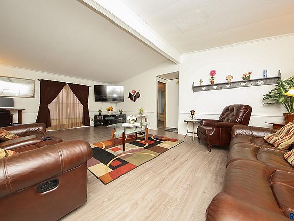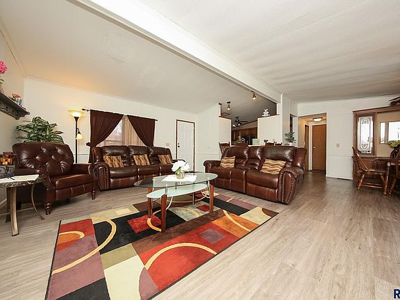 Spacious home on a spacious lot! So much room to enjoy here. This 3-bedroom, 2 bath MH has been well maintained and loved. The oversized 2 stall garage is a rare advantage! And even more storage space in the generously sized lawn shed. New, partially covered, large front deck offers outdoor living space overlooking the beautiful double lot with mature trees and great landscaping. The wide-open living space in this home makes it both comfortable and functional with new luxury vinyl plank flooring throughout. Both full bathrooms have been updated and refreshed, and the primary suite includes a large walk-in closet. All appliances stay with the home, including the washer and dryer. Come take a look at this wonderful home today!