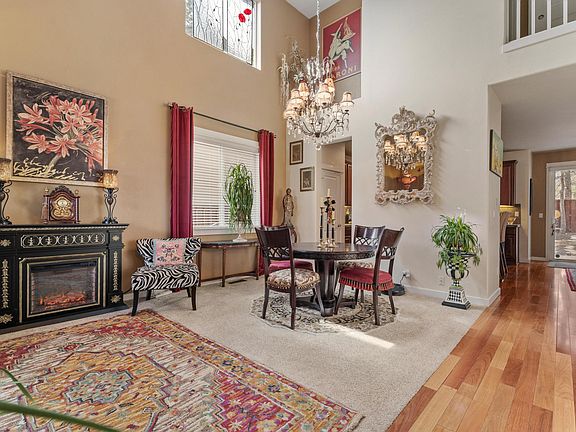 As you enter, stunning Brazilian cherry wood floors greet you, setting the tone for soaring ceilings in the elegant formal living room that opens to the upstairs landing and creates an inviting, airy feel. The wood flooring continues into the freshly painted, spacious kitchen featuring under-cabinet lighting with dimmers, a new dishwasher, marble-top island/breakfast bar, pantry, and stainless appliances. Off the kitchen, a second living room boasts a gas fireplace and a large picture window framing the backyard. The grand staircase leads to the laundry room, two guest bedrooms, a full bath, and the primary suite with bonus room, walk-in closet, dual sinks, soaking tub, and separate shower. The private backyard offers mature trees, vegetable beds, and a shed. Ideally located near the river trail, shopping, and Elk Meadow Elementary. HOA amenities include a clubhouse, fitness center, tennis courts, and pool!