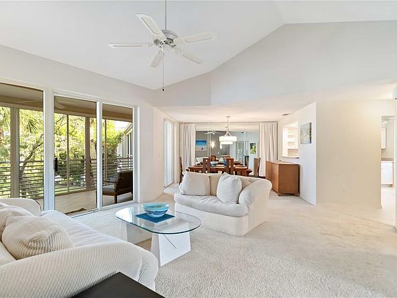 FULLY FURNISHED TURN KEY CONDO!! Mediterranean Elegance in the Heart of Florida! Welcome to Vizcaya, a beautifully maintained and highly sought-after gated condo community offering 24-hour security, lush landscaping, and resort-style amenities. This renovated second-floor end unit is the perfect blend of comfort, style, and tranquility. Step inside and you'll immediately notice the vaulted ceilings and abundance of natural light that pours in through large windows and sliding glass doors. The spacious balcony is ideal for morning coffee or evening relaxation, offering picturesque views of the serene pond, elegant fountain, and manicured grounds. The kitchen is both functional and charming, featuring cream-colored wood cabinetry, Corian countertops, and ample storage—perfect for home chefs and casual entertainers alike. The open-concept layout flows seamlessly into the living and dining areas, creating an inviting space to gather and unwind. The primary suite is a true retreat, complete with dual walk-in closets and a renovated spa-like bathroom that includes dual sinks, a glass-enclosed walk-in shower, and a separate vanity area. The split-bedroom floor plan allows for privacy and flexibility, making it ideal for hosting guests or setting up a home office. Vizcaya is more than just a place to live—it's a lifestyle. Residents enjoy access to an elegant clubhouse, one of the largest heated community pools in the area, fitness centers, saunas, a large meeting and event room, and a calendar full of community activities and social gatherings. The beautifully landscaped grounds, walking paths, and tranquil water features make every day feel like a vacation. Ideally located near shopping, dining, golf courses, medical facilities, and the Gulf beaches, Vizcaya offers a prime location with the peace and privacy of a gated oasis. Don’t miss this rare opportunity to enjoy elegant Florida living in one of the area's most established and well-kept communities!