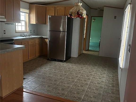 Nicely maintained 2002 manufactured home. Property features 2 very large bedrooms, open layout of kitchen, dining area, and living room, brand new hot water tank, Property will need a roof in the near future, as well as a roof on the 3 season porch. Some cosmetics needed inside to include flooring in the master bedroom. Home was recently power washed and is waiting its new owner. Financing is available to those who qualify with a minimum of 10% down. Call today for your private showing!
