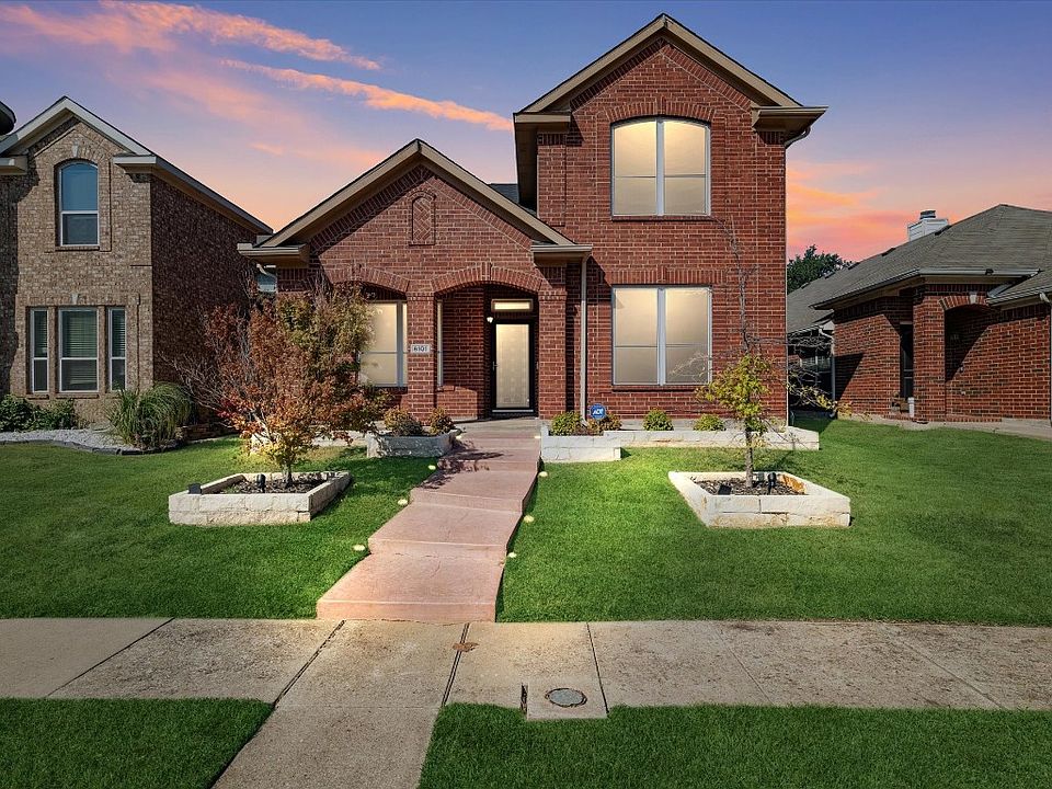 Come see your new home in Legend Trails in The Colony! This home has a great layout w. Primary en-suite on 1st floor. Also, you will find a large kitchen with tons of counter top space and cabinets w. new appliances. The kitchen opens to a large family room, perfect for entertaining or cozying up to the fireplace on movie nights. Upstairs you will find 3 bedrooms, a large game room and a full bath. The front yard has beautiful landscaping with newly installed lighting and stone work. In the backyard you can enjoy a covered patio with fan and outdoor tv connections. Energy efficient windows installed in 2019 that allows lots of natural light in, if you remove the solar screens. Roof is less than 2 years old, New carpet and paint throughout, hot water heater 2023. Easy access & minutes away from Hwy 121 & DNT, Hawaiian Falls, Grandscape shops, restaurants, and more.