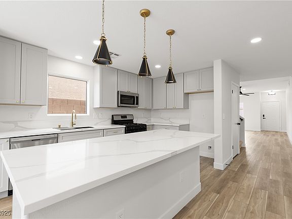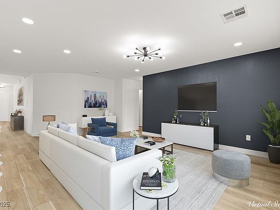 Inside, you’ll find modern interior design touches throughout, including recessed lighting, accent wall, ceiling fans, plush carpeting, & laminate wood flooring. The custom kitchen has a garden view, upgraded cabinets with gold hardware, stainless steel appliances, recessed lighting, & island with seating. Bathrooms have been fully upgraded w/contemporary finishes—featuring rainfall shower heads, a soaking tub in the primary suite, floating vanities, framed mirrors, and custom lighting. This move-in ready home combines style, space, and location—don’t miss your chance to make it yours!