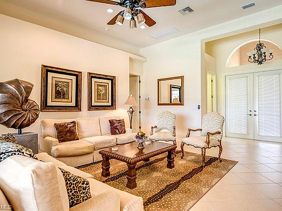 This beautiful, fully furnished Augusta model floor plan home is located in the gated community of Prestwick within the famous Lely Resort. It features 3 bedrooms, 2 bathrooms, dining area, living room, laundry room, attached 2-car garage, and screened lanai with private heated pool. There is a dining table for 4 and 4 custom-designed bar stools. The living room has comfy large furniture and a large 42"" flat screen TV. There is also a TV in the primary bedroom. The screened lanai features a nice patio set for 4, loungers, and a BBQ grill, perfect for that famous, casual Southwest Florida entertaining and relaxing. Optional Players Club membership transfer available. This vacation rental can utilize The Players Club & Spa for a transfer fee of $397.50, including tax, for the entire length of your stay. This facility offers twelve lighted Har-Tru tennis courts, a stadium court for exhibition play, basketball court, theater room, fitness/lap pool, two resort-style pools with waterfall features, a kids' tot lot, state of the art fitness center with two aerobics rooms, bocce courts, spa and nail salon, dining room with new grille room and bar, outdoor tiki bar and so much more! When it comes to diversity and excitement, Naples is the Gulf Coast's premier address, and Lely Resort is the epitome of luxury. Sprawled across 3,000 acres, it offers 3 championship golf courses, running/walking trails, picturesque lakes and preserves, and a convenient grocery store/shopping center just minutes away. With 42 beautiful neighborhoods to choose from, including condominiums, villas, and single-family homes, Lely Resort is the perfect vacation destination. Whether you're looking for relaxation or excitement, Lely Resort has something for everyone.