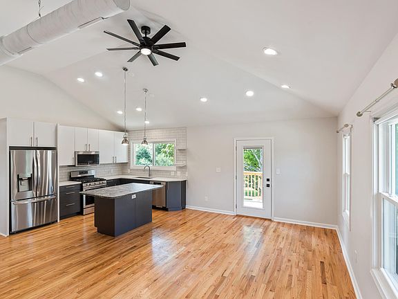 Open floor planTankless water heaterVaulted ceilingsHardwood flooringStunning tiled bathroom