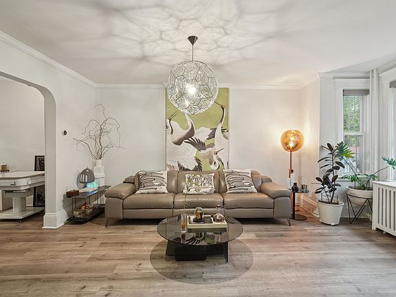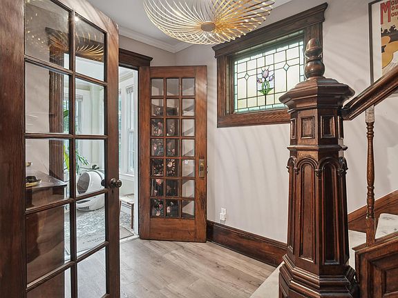 Begin in the heated entry foyer, then admire the original wood staircase before entering the elegant living and dining area, complete with French doors, a coffered ceiling, and a brand-new powder room. The heart of the home is the custom kitchen, boasting quartz countertops, premium stainless steel appliances, and sleek cabinetry that's as functional as it is stylish.