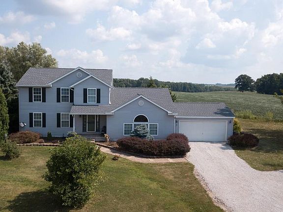 Outstanding views from this beautiful home in the county. The kitchen and dining room have both been completely renovated. Its an entertainers dream with room to host holiday occasions and parties. White and grey cabinets with large subway tile backsplash give the kitchen a fresh and modern look. Gorgeous stainless steel appliances covey with the property. A bedroom was added to the main level of the house and there is a large convenient main floor laundry. The large back deck is off the kitchen and dining room for additional space to entertain or to enjoy summer night dinners. The office has built in cabinets and two spaces. The second level has a spacious owners suite with an on-suite bathroom along with two other bedrooms and bath. The basement has a partially finished room and plumbing in place. There is an additional hookup for laundry and a laundry sink. 1.7 acres provides plenty of room for 4 H Club animals and gardens. Don't wait to make this your new home it wont last long.