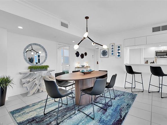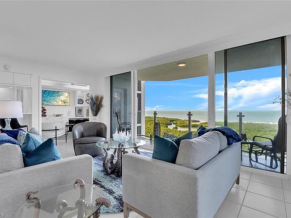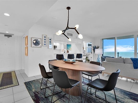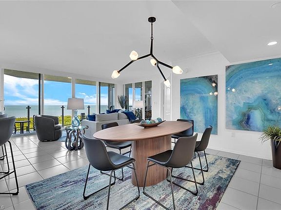 Enjoy this beautiful condo at St. Maarten in gorgeous, coastal Pelican Bay! This updated condo with modern finishes boasts an exemplary view. The eat-in kitchen allows for multiple water views. Dining table comfortably sits six. Enjoy your coffee and breathe in the Gulf of Mexico on the balcony. The living room offers comfortable seating facing West for full enjoyment of our breathtaking Naples sunsets. Adjacent to the living room is a second sitting area with a TV. The primary suite offers additional gulf views as well as a connected lanai. Relax in the sprawling king size bed and en suite bathroom. The guest bedroom features a queen size bed and a spacious closet. Building amenities include a large pool and hot tub, exercise room, sauna, social room, and billiards. Pelican Bay amenities include 18 Har-Tru tennis courts, 20 pickleball courts, tram to 3 miles worth of private beach, indoor and outdoor dining, first-rate Fitness Center, Community Center, and much more! Waterside Shops, offering world class retail and great restaurants are also within 2 miles from the building. HOA Application-Application forms will be provided upon booking via email.