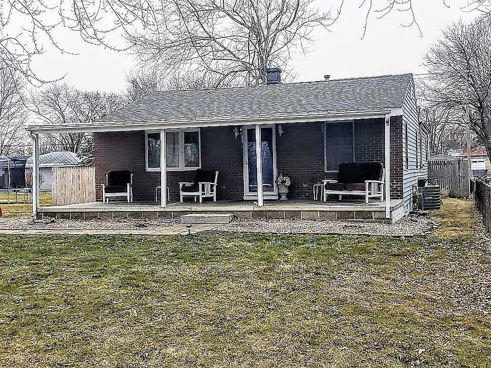 Great location, spacious home, affordable price! Yorktown schools! Large enough to enjoy sitting on, the front porch welcomes and leads you in to the nice sized living room with large picture window. The updated eat-in kitchen features plenty of white cabinets, new countertops (1 yr), and all appliances including range, refrigerator, microwave, and built-in dishwasher. Off the kitchen is a really spacious laundry room with storage cabinets and access to the large back yard. Two of the home's bedrooms are oversized: Master bedroom has two roomy walk-in closets and patio doors also accessing the back yard and the second bedroom makes a perfect bedroom/study space (one wall has chalkboard paint). The nice bath is a 4-piece and has a newer vanity and ceramic tile floor. Other information as follows per seller: Central air unit new 2017; roof shingles new 2017; new water heater; plumbing capped off in crawl space under BR 2 for addition of second bath; replacement windows. Property tax exemptions may not be in place for 2020 payable 2021 as there was a deed change and the new exemptions were not filed prior to the end of 2020. You'll be excited for warm weather so you can enjoy the wonderful above ground pool installed by Wasson's in late Summer/early Fall 2019 but only used one season (2020) - size is 24' x 48'. ***Landscaping includes many perennials; seller reserves and will take some of the bulbs. Whole back yard has newer privacy fencing!