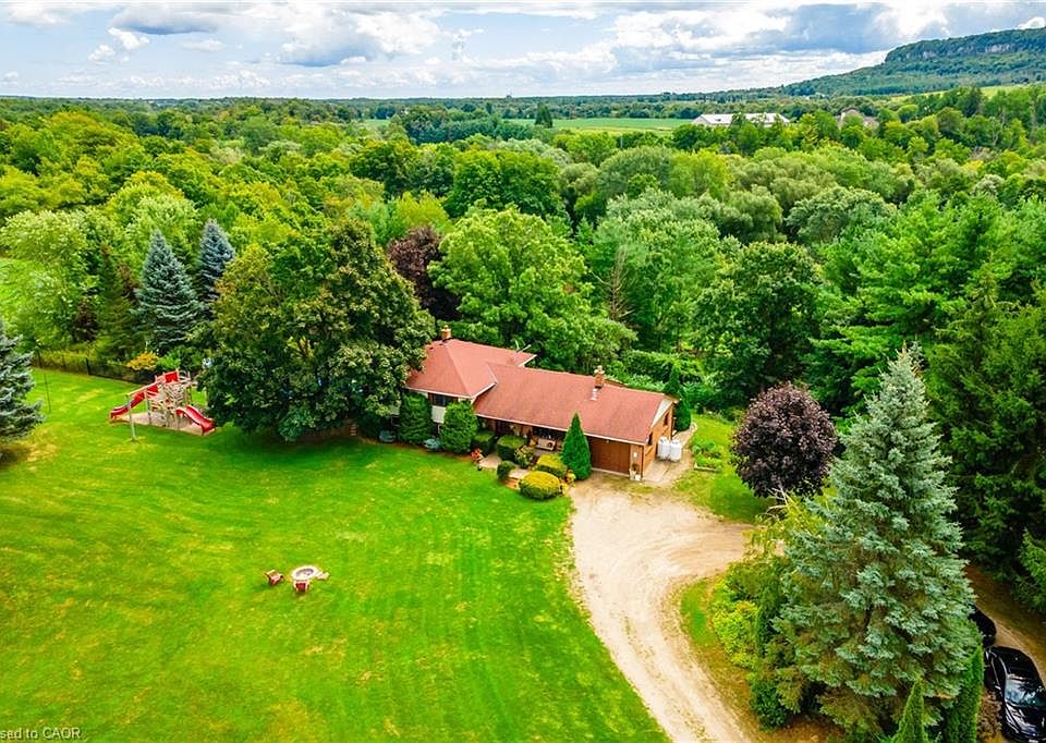 For nearly half a century, one family has called this remarkable country property home. A place where generations have gathered, memories have been made, and the beauty of the escarpment has been savoured every single day. Set on 25 acres along a stretch of Walkers Line, this 4-bedroom, 2-bathroom home offers sweeping views of Mount Nemo, Rattlesnake Point, and the Bronte Valley. Large windows frame breathtaking sunrises and sunsets, while the open-concept kitchen and dining room seamlessly flow into the downstairs family room, making entertaining effortless. From hosting weddings and annual corn roasts, to cozy evenings by the wood-burning fire, this property has been the backdrop to life’s most meaningful moments. The spacious dining room opens to a balcony and patio overlooking fields to the east and the tranquil country landscape beyond, while a second-floor balcony provides serene views of the swimming pool area and surrounding fields. Summers were spent around the pool, autumns surrounded by brilliant escarpment colours, and winters gathered inside for board games by the fire.Beyond the home, the property includes a greenhouse, workshops, and outbuildings, all of which supported a thriving family business for decades. The land and facilities offer tremendous potential for a new family looking to combine work, rest, and play in one unforgettable setting. With multiple outdoor spaces to enjoy different views, a balcony off the dining room, and the quiet privacy of country living, this property truly captures the essence of a rural lifestyle just minutes from Burlington. After 48 years, the time has come for a new family to experience the same magic. To watch children explore, grandchildren play, and loved ones come together in a home that feels timeless. With multiple outdoor spaces to enjoy, unmatched privacy, and endless possibilities, 6101 Walkers Line is more than a country property, it’s an opportunity to build the next chapter of your family’s story.