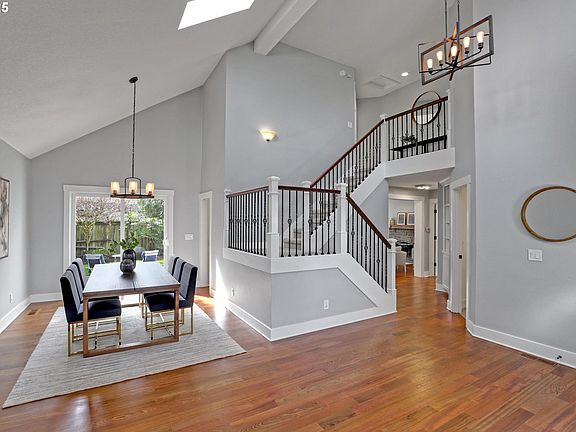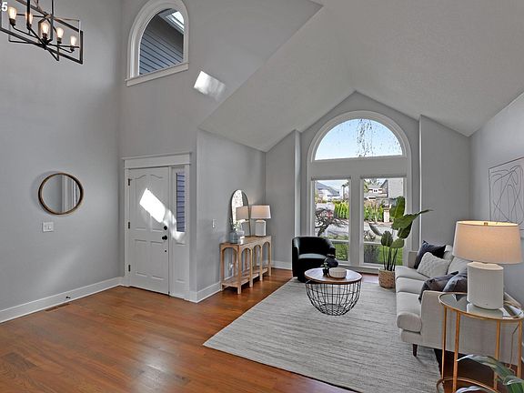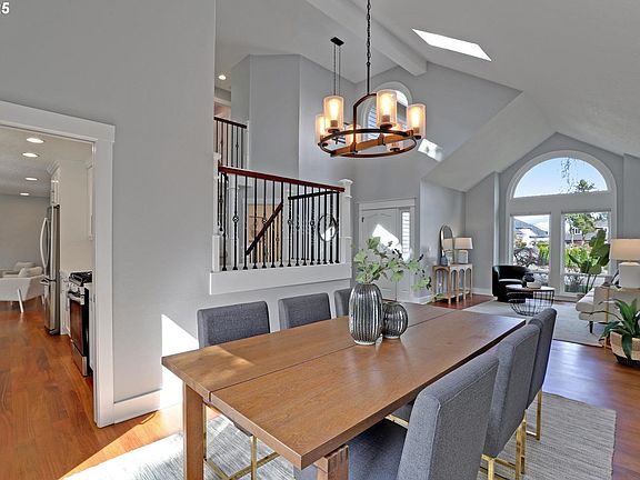 Beautifully updated 4 bed, 3 bath family home in desirable Hidden Springs. Light and bright with vaulted ceilings and newly finished hardwoods throughout the main level. The home boasts a completely updated kitchen, along with fresh interior and exterior paint. Main level den or bedroom with closet and adjacent full bathroom makes it versatile as a guest room. Spacious primary with sitting area, walk-in closet, soaking tub, and rainfall shower. Two additional large bedrooms and bathroom on the upper level.Large level grassy lot, with planter boxes, aggregate patio, sprinkler system, and mature landscaping. Rare 3 car garage (776 sq ft) with workbench and ample attic storage. New (2022) 50-year Presidential Roof, all windows replaced, and renovated crawl space.Incredible location less than a 10-minute walk to Trillium Creek Primary, Rosemont Ridge Middle School, and the neighborhood pool and tennis courts. Quiet neighborhood with access to great parks in the safest city in Oregon.