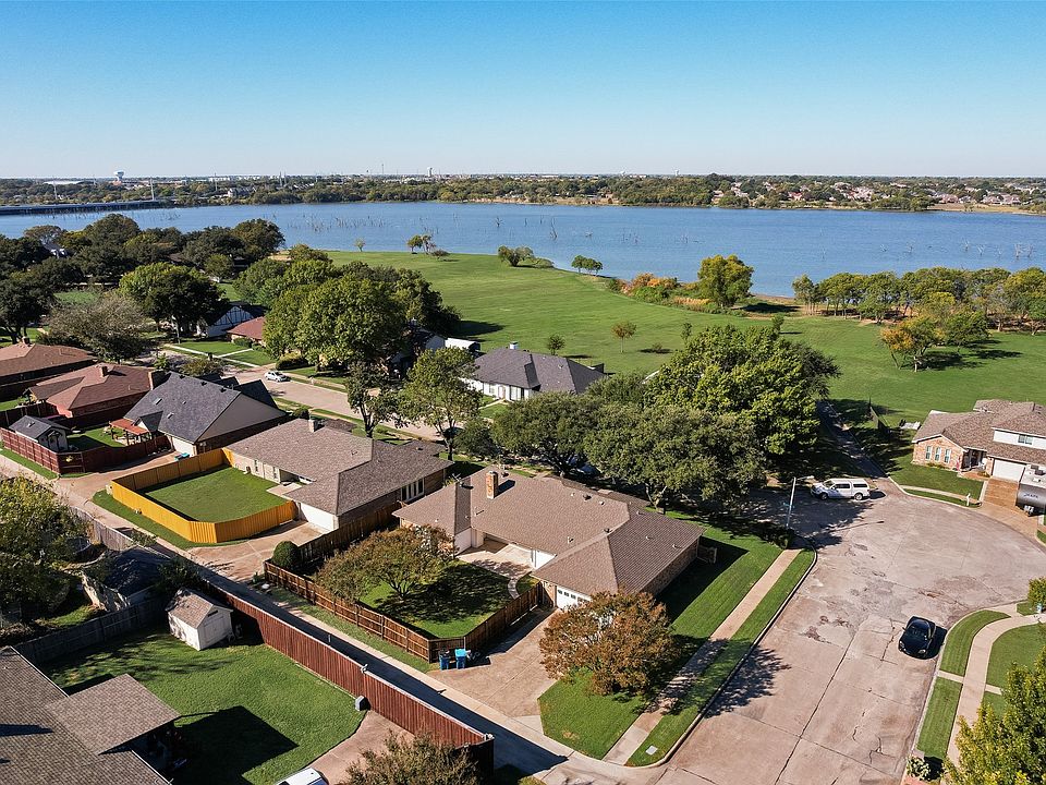 CHARMING CORNER-LOT RANCH near LAKE RAY HUBBARD with ENDLESS POTENTIAL! Welcome home to this charming one-story ranch on a beautiful corner lot surrounded by stately mature trees and amazing front-yard views of Lake Ray Hubbard. Located just across the street from the water, this home offers the ease of walking to the lake for fishing, evening sunsets, or launching your kayak. The neighborhood is well-established and quiet, offering a relaxed lifestyle with easy access to outdoor recreation. And, NO HOA! Inside, the home reflects its original 1970s character and charm with warm natural wood accents, vaulted ceilings with a wood beam, and two spacious living areas. The main living room features a curved brick fireplace and a huge picture window to the tranquil backyard. The second living room includes a full bathroom and built-in cabinets. This is a wonderful flex space that could be ideal as a guest suite, home office, kids retreat or an additional living room. Huge Primary Bedroom features separate vanity rooms and separate walk-in closets. Modern improvements include updated windows, HVAC, electrical panel, LVT flooring, fresh interior paint, new roof in 2020, and more. Foundation repaired in 2021, includes a lifetime transferable warranty for added peace of mind. The layout offers excellent potential for personal touches, cosmetic updates, or a full redesign if desired. The large backyard features a covered patio, lush St Aug grass and plenty of space to play, garden or entertain. With generous room sizes, a flexible layout and an oversized garage, this home is ideal for buyers seeking a peaceful retreat, as well as investors looking for a great long-term rental opportunity with strong area rents. Come take a look and see where your relaxing lake lifestyle begins.