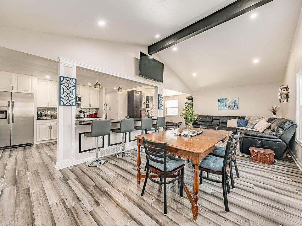 Extensively and beautifully updated ranch on a dead end street is ready for new owners. All major structural and mechanical updates have been done since 2021: roof, furnace, AC, exterior paint, basement foundation, 200amp electric service! Not to mention an amazing KIT that is HGTV worthy w/white cabinetry, black quartz tops, and SS appliances. Perfect floorplan for entertaining! Coffee/Wine bar area w/quartz and bev fridge. Cozy Family Room w/vaulted beamed ceiling. 3 bedrooms w/fully updated main bath w/new deep tub plus main floor half bath. New stamped concrete patio in backyard to enjoy the yard. Convenient attached 2 car garage. Blank slate basement w/built-in bar ready for your custom touches plus plenty of room for storage. EZ Breathe humidity control air purifier in LL. Wow!