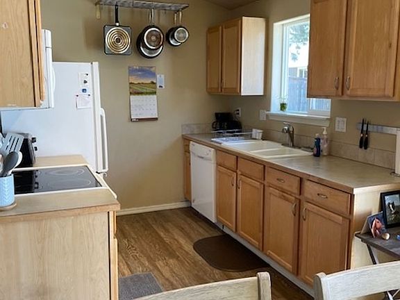 This 3 bed 2 bath home has been excellently cared for, and it shows! In the spacious living room, there is a wood stove, which will not only keep your electric bill down in the winter, but also keep you nice and cozy. The master bedroom offers an en suite. There is a laundry area with washer and dryer included. The backyard is very large, fully fenced, boasts mature trees, and is beautifully landscaped. There is a huge deck and a storage shed right off the house, helping to keep your garage free to park in. This beautiful house is located in a wonderful neighborhood close to schools, parks, and shopping. Call, text, or email to schedule a showing!