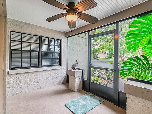 Welcome to this Adorable 2 bedroom, 2 bath villa which is being presented to you with over 1304 Sq ft of living space. This hard to find one story, end unit is bright and inviting with natural light that comes from the large windows throughout the villa. As you enter the villa thru the screened front patio you arrive in the expansive living room with trey ceilings. The living room leads into the Lanai that has been converted into living space and could be used as an office or sunroom. There is a separate dining room where you can entertain with friends and family. The kitchen has stainless steel appliances and an eat in kitchen where you can enjoy your morning coffee while looking out of the bay windows. The home offers a split bedroom plan giving everyone the privacy they desire. The primary bedroom has an En Suite bathroom with tub and walk-in closet. The guest bedroom has a custom built Murphy Bed with walk in closet. The secondary bathroom has walk in shower. Attached garage has outside entry with screen door, washer and dryer, utility sink and automatic garage door opener. Timber Pines, a 55+ guard gated community, With 4 golf courses, country club, remodeled restaurant and bar, two geo-thermally heated community pools, fitness center, tennis and pickle ball courts, bocce and shuffleboard, horseshoes, jogging trails, water aerobics, billiards room and more. There are more than 100 different clubs and classes including pottery, painting, crafts, quilting, mahjong, bridge, pinochle or euchre just to name a few. We invite you to schedule a showing, look around, ask questions, see yourself living here, fall in love and make an offer! SOLD AS-IS FOR SELLERS CONVIENENCE.