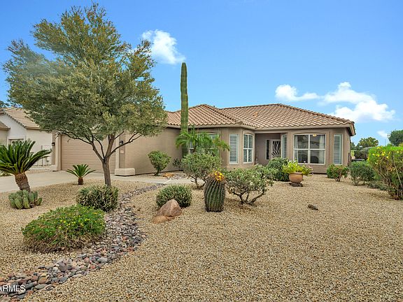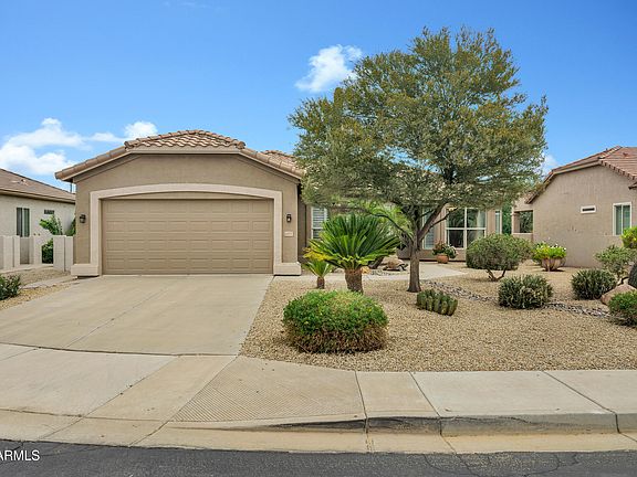 Backing to the 15th tee box of the Lone Tree Golf Course, This beautiful home has been wonderfully maintained**With 2BR/2BA plus a large office/den and split bedroom floor plan, there is plenty of space for friends and family to visit and enjoy the fabulous AZ sunshine!**Plantation shutters on most windows**New interior paint**Neutral 20x20 tile t/o kitchen, baths and traffic areas**Spacious kitchen offers stainless steel fridge, microwave/convection combo, flat top range and quiet dishwasher**Large laundry room has niche with built-in office/craft space**Garage has 4 ft extension to allow for that larger vehicle or workshop space**Covered patio extends the whole length of home and affords sweeping golf views as well as the beautiful San Tan Mountains**Soft water system and Reverse Osmos drinking water, garage utility sink, ceiling fans in each room (plus 3 on covered patio) are just a few of the upgrades making this home comfortable for you, whether you prefer a quiet cup of coffee on the patio as the sun rises, or an exciting game of volleyball at the community pool. Solera has something for everyone! Community center offers lap pool, swimming pool, tennis and pickle ball, as well as multiple open clubs and community events. Truly one of the most fun and friendly active adult communities in the Valley of the Sun.