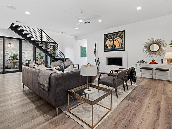 Nestled on a tranquil private street with no neighbors in front or behind, this home is a rare offering—providing complete seclusion while being just 10 minutes from Austin. Upon arrival, a serene courtyard sets a tone of understated grandeur, inviting you into interiors where a floating staircase and floor-to-ceiling windows create a luminous, airy ambiance. The main living spaces flow effortlessly, blending architectural sophistication with effortless comfort. Designed for entertaining, the chef’s kitchen features top-of-the-line appliances, dual ovens, two JennAir beverage refrigerators, a full-size wine fridge, expansive prep & gathering areas. Adjacent to the kitchen, multiple versatile rooms—including two executive offices—offer flexibility for a home gym, fifth bedroom, or scullery.?The primary suite is a true private retreat, occupying a quarter of the upper level. A spacious sitting area with a fireplace offers warmth & elegance, while the spa-inspired bathroom, expansive custom walk-in closet, and boutique-style shoe closet create an atmosphere of true luxury & tranquility.?Additional features include a detached garage apartment with a private entrance, kitchenette, full bath—ideal for guests, family, or live-in staff. New windows & doors throughout, upgraded insulation, all-new AC ductwork, with multiple climate zones ensure exceptional energy efficiency. A full-home Generac natural gas generator, Lutron smart lighting, & electric blinds further enhance convenience and peace of mind. Step outside to your personal resort-style oasis, complete with a full outdoor kitchen, entertainment area, industrial fans with misters, & cowboy soaking pool surrounded by custom decking. Privacy fencing and lush turf landscaping, including a discreet pet run, make outdoor living effortless and inviting. Experience the pinnacle of privacy, luxury, & location in one of Austin’s most desirable neighborhoods.