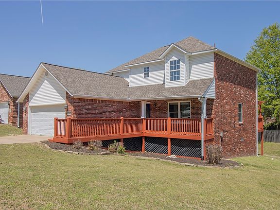 Very well kept 4 bedroom 2 bathroom home in the Champions Estates Subdivision, close to entertainment, restaurants, shopping and the Pinnacle Hills Business District! The primary bedroom is located conveniently on the first floor, with three additional bedrooms on the second level. Each room has so much storage! You’ll lose count of all the closets in this house! Home has updated tile in the wet areas and wood flooring in the living space and primary bedroom. Wonderful covered front porch! Great back deck with pergola for relaxing in the sun!