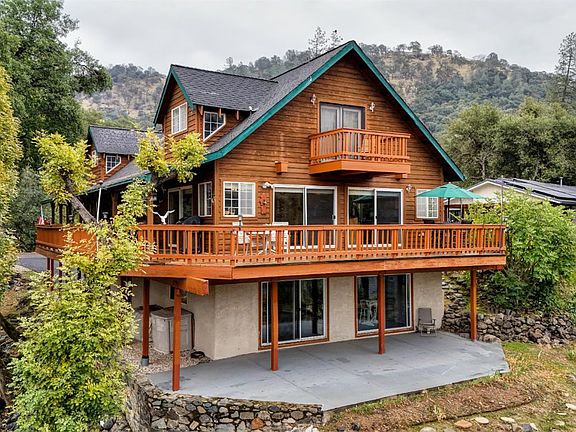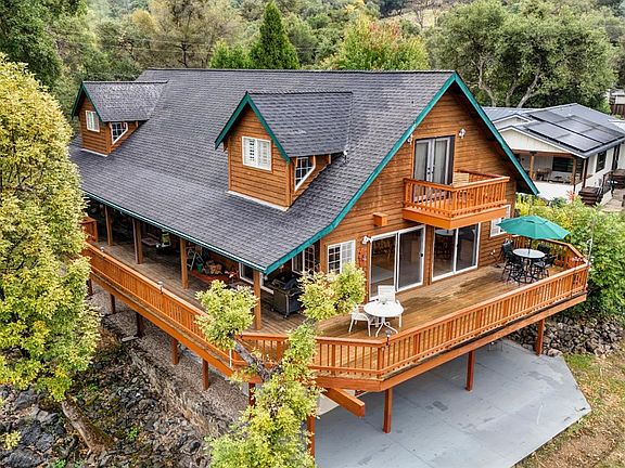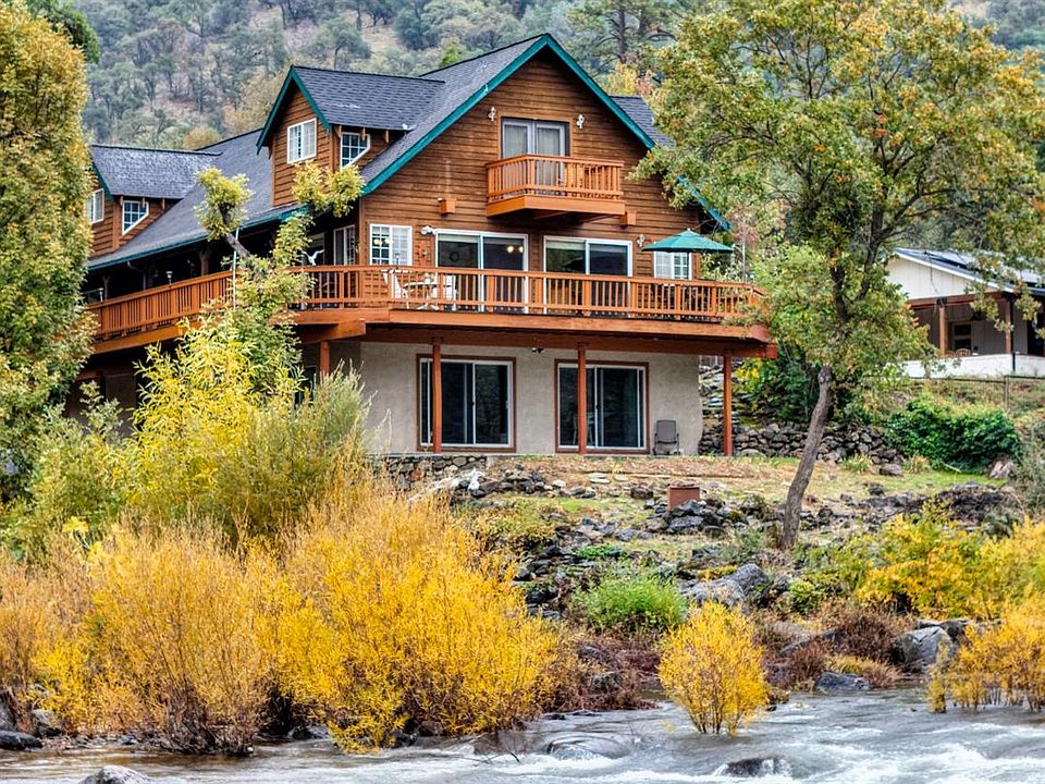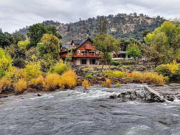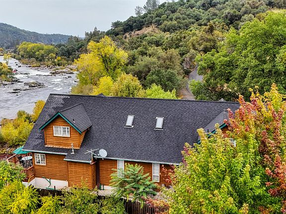 Riverfront retreat on the South Fork American River! Overlooking one of the river's most celebrated rapids, this 2,678sf home offers a rare blend of space, serenity, and spectacular views. The open-concept layout features vaulted, open-beam ceilings and expansive windows that fill the home with natural light and capture the river's beauty. With three spacious bedrooms (including two primary suites upstairs) and a large office, there's plenty of room for family and guests. Enjoy the scenery from the kitchen, dining area, or step outside to the wraparound deck, private balcony, or lower-level patio. A seasonal creek, Dutch Creek, meanders along the side of the property, adding to the tranquil setting. The two-car garage includes an attached 1,000 sq. ft. multi-purpose space, ideal for a recreation room, workshop, office, or potential ADU. This bright ground-level area features two sliding glass doors that also open to a patio overlooking the river.