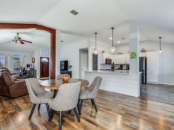 Cozy fireplaceOpen floor planHigh ceilingsWood floorsOversized islandExtended drivewayLarge covered deck