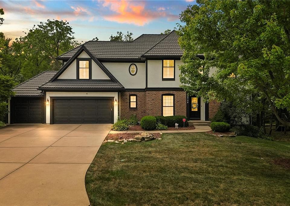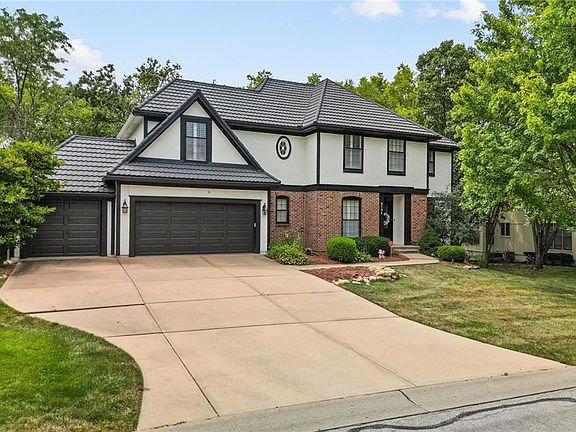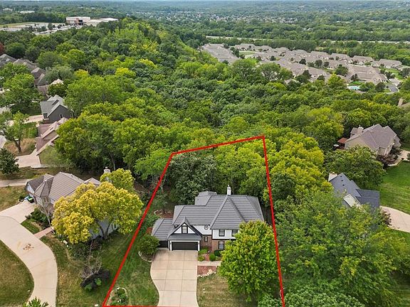 Welcome to this exceptionally well-kept home offering 4 bedrooms, 3.5 baths, and nearly 4,500 sqft of finished living space. It is spacious and thoughtfully designed. The double-sided fireplace from living room to kitchen and built-in desk in the kitchen enhance the main living spaces, while the three decks offer a serene connection to the surrounding wooded space, creating a treehouse-like experience. The outdoor kitchen only adds to the comfort of this gorgeous home. Catch a game of basketball on the mini basketball court! The primary suite bath has been updated to modern standards with all new cabinetry, mirrors, shower, tile, granite countertops, flooring and soaker tub adding luxury and convenience making this home a perfect blend of modern amenities and natural beauty! The finished basement only adds to its appeal with a work out room, bar area AND MEDIA ROOM complete with theatre-style seating waiting for you and your family to watch those Chief's play and movie nights!!! There are also 2 storage areas!