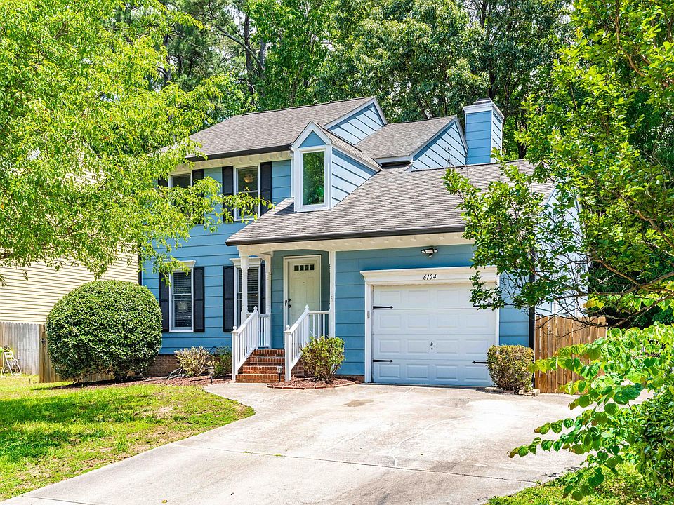 Located in a desirable Raleigh neighborhood, this home is walking distance to shopping, dining, parks, gym and everything you love about city living. Impeccably maintained and thoughtfully updated, this charming Raleigh home leaves no detail overlooked. From the upgraded siding and windows to the refreshed flooring, bathrooms, and kitchen, every space has been enhanced for modern comfort and style. Step into a spacious, light-filled living room that welcomes you with warmth and natural light. The formal dining room offers the perfect setting for both casual meals and elegant entertaining. The updated kitchen features sleek granite countertops, a new tile backsplash, and newer appliances, all centered around a fantastic peninsula with bar seating ideal for cozy mornings or gathering by the adjacent fireplace. Upstairs, you'll find three generously sized bedrooms and two full baths. The serene primary suite boasts a custom accent wall, a walk-in closet, and a beautifully renovated en-suite bath with a granite-topped vanity and updated tile flooring. Secondary bedrooms offer ample space and storage, and the shared bath includes a stylish new vanity and tile floor. Outside, enjoy a fully fenced private backyard with a firepit and garden area perfect for relaxing, entertaining, or indulging your green thumb. Privacy fence is cedar for low maintenance.
