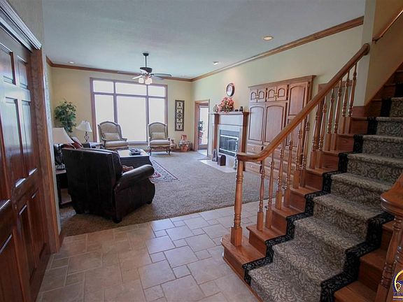 Spacious 6 BR, 3.5 BA home in Washburn Rural. Enjoy sitting on your back patio or your deck in the evening listening to the sounds of birds chirping or water running in the stream behind the house. Lots of upgrades including granite kitchen, updated master shower, and professional landscaping. Walkout basement includes 2 egress bedrooms, full bath, and huge rec room. Lots of room for entertainment. No flood insurance required.