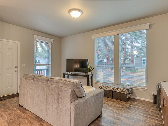 Welcome to this 2019 Energy Star Palm Harbor manufactured home, perfectly situated on a beautifully landscaped corner lot. Enjoy the convenience of being just minutes from the Old Mill District, nearby trails, the Deschutes River, and all that Central Oregon has to offer. This home features 3 bedrooms and 2 bathrooms, including a spacious master suite with a large closet and private bath. The kitchen boasts a pantry and a large island with a dining area that opens seamlessly into the roomy family room—perfect for entertaining or everyday living. Monthly space rent of $1,176 includes access to the community recreation room and newly renovated pool area. Please note, the sale includes the mobile home only; land is not included.