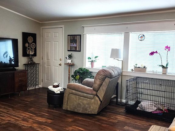 Cute, well-cared for home in Fox Hills family park in Bend. Efficient, open floor plan with vaulted ceilings and wood laminate floors. Spacious kitchen with lots of counter space, island with breakfast bar, SS range/refrigerator, and pantry. Separate laundry room is connected to primary bathroom. Large primary bedroom has good separation from additional two bedrooms. Walk-in shower in primary bathroom. Central A/C. Enjoy morning coffee on your front or back covered deck. Private, fenced back yard. Detached two car garage. Quiet neighborhood. Space rent is $886.73 and includes water, sewer, clubhouse, and street snow removal. Home sold AS-IS. Come check out this terrific home!